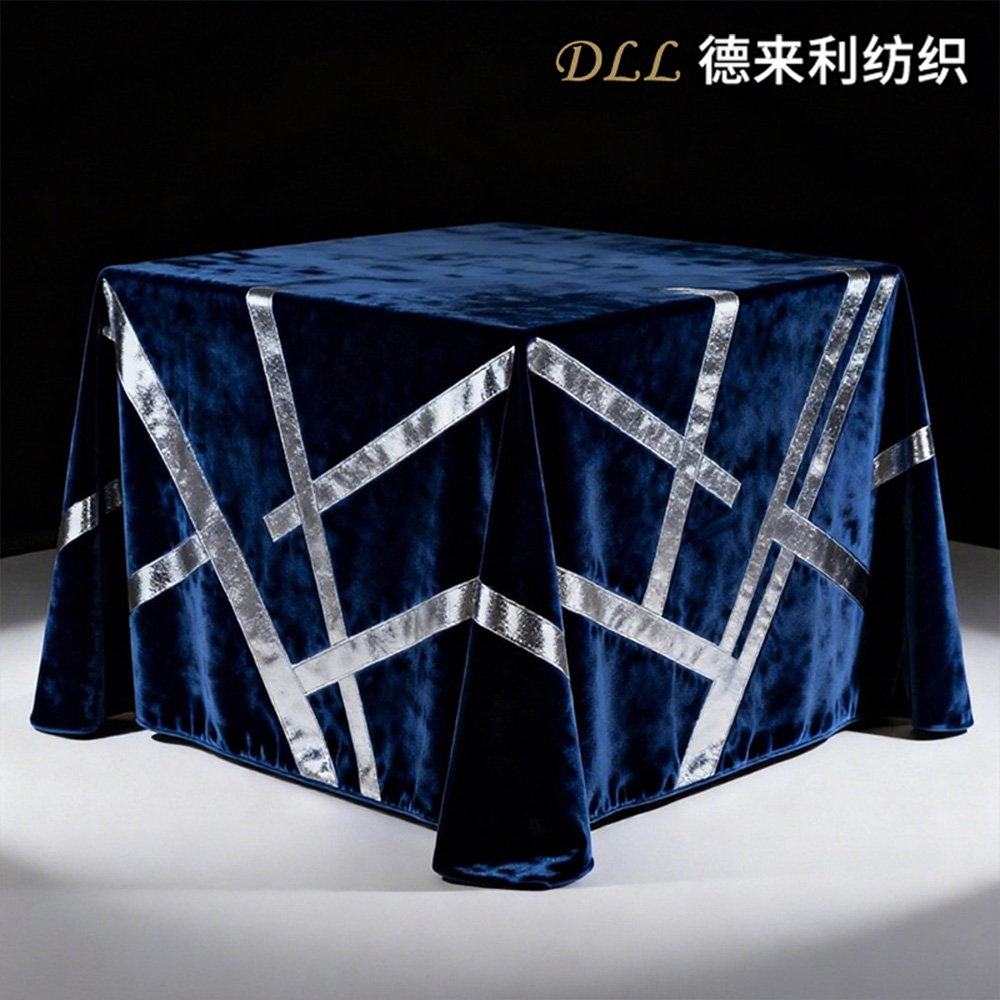 مفرش طاولة مخملي باللون الأزرق الداكن مع خطوط هندسية فضية