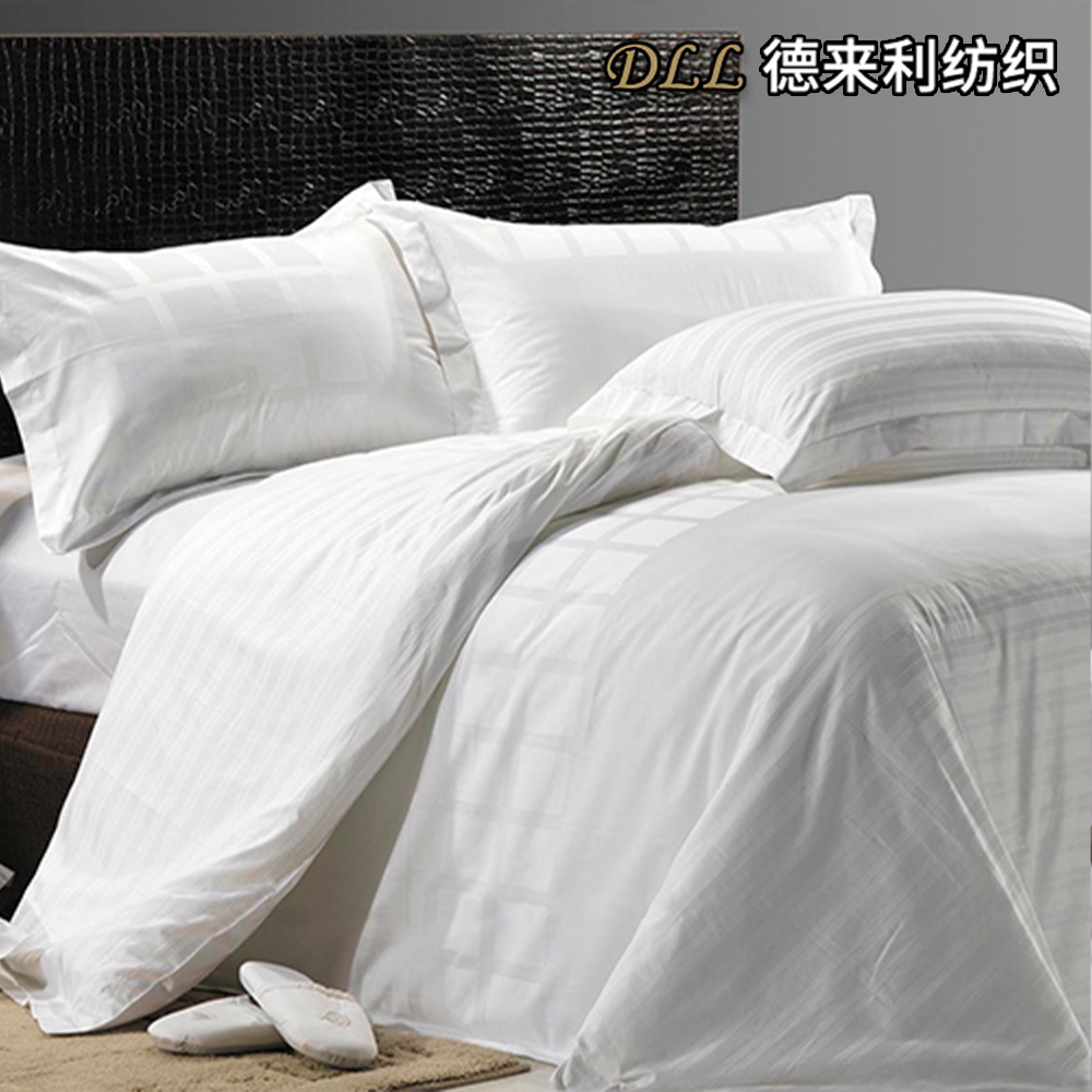 مفروشات أنيقة مخططة من الساتان الأبيض للفنادق